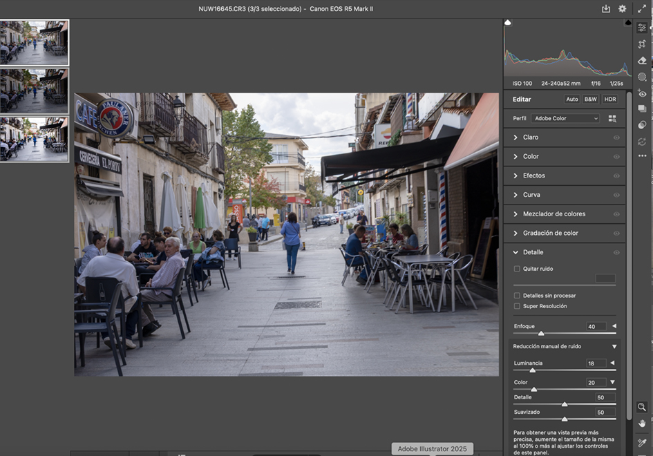 ·   Under Detail, set Color Noise Reduction: 20 and Noise Reduction: 18.