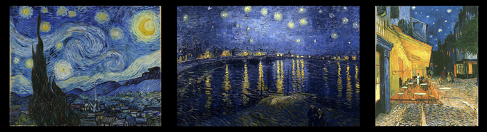 The night has been a source of inspiration for artists since ancient times, long before photography became popular. Some of Van Gogh’s most famous paintings are night scenes. Some of my favorite ones are Starry Night, Starry Night Over the Rhone, Café Terrace on the Place du Forum at Night.