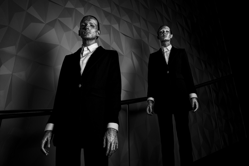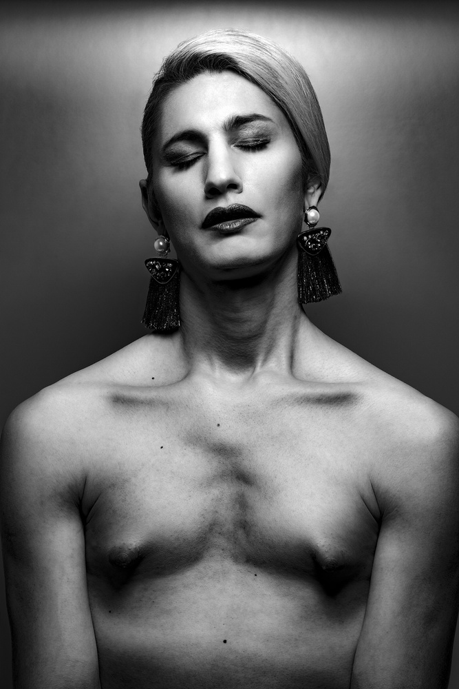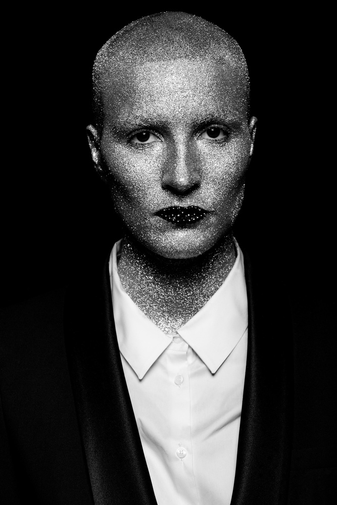 The next day Gautier continued with his project “New Humans”, a lot of these androgyny photographs, show selfish, stylish and bizarre humans and were published on 1x already. It’s about our society today, where the successful change character and interests. They lose empathy for their surrounding, become cold, beautiful - but empty, busy only with themselves and keeping on the track of success. The works for Gautier’s projects often have some stylish aspect, because that’s all “New Humans” strive for, coolness and beauty.