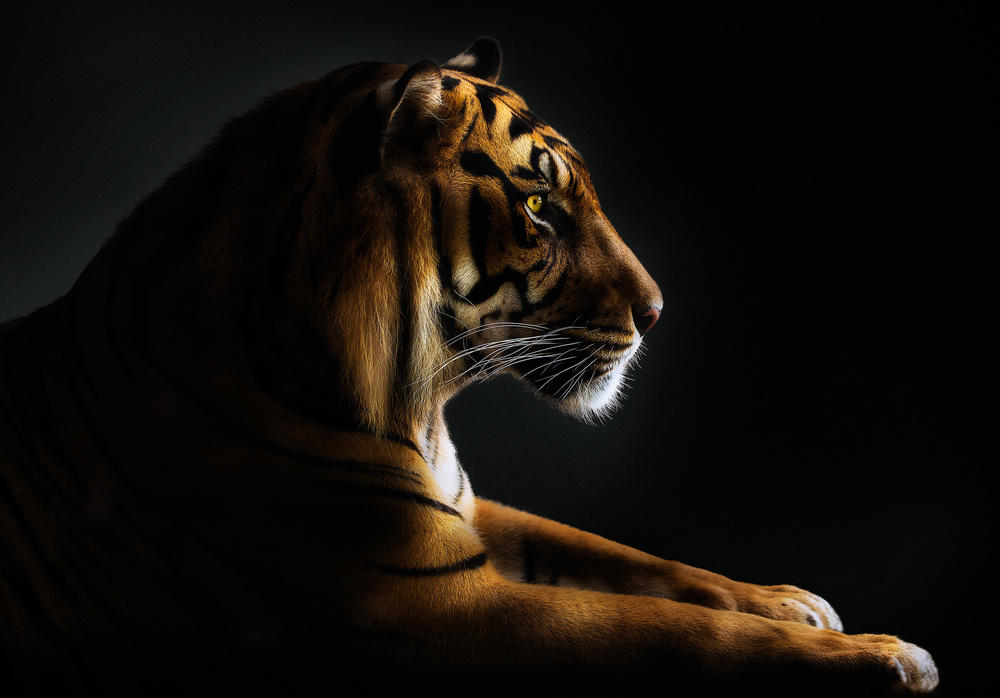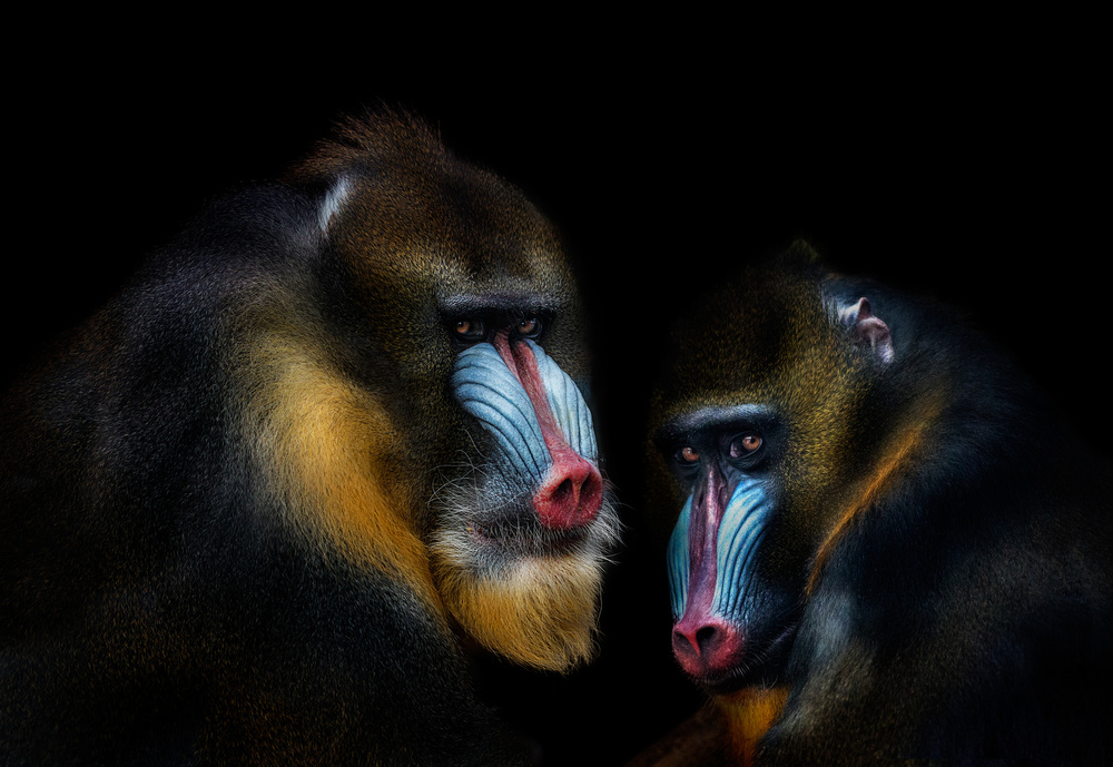 So I chose to make the portraits from a feasible (and safe) position and recreate the studio in the edition phase. I started experimenting, and I realized that in the end the result was better, because the animal behaved naturally when not forced to be in a studio. Studio work often frightens or stresses the animal, and the result is a portrait of a harassed creature. So what was initially a constraint ended up becoming an advantage. The animal is often unaware that he's being photographed, or if it is, eye contact is made, but each one from his own safe space. And I often try to get that eye contact, because that is where your consciousness is best perceived and a fascinating interaction develops. I then came to the conclusion that it is not worth forcing the animal to pose in a photographic studio just to get a dark background. If this can be done in post-production, there is no need to disturb it.