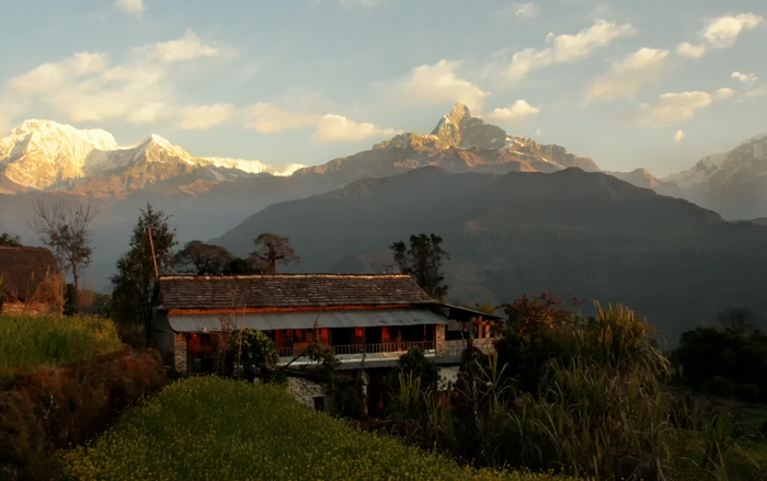 Astam is an Annapurna Eco-Village composed of several cottages set amongst an eco-farm within a traditional Nepali village and the backdrop is the majestic Annapurna range. Fishtail mountain looms in all its glory!