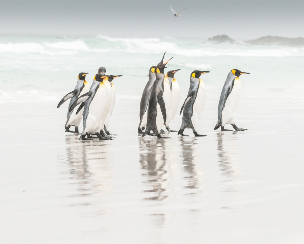 I have two images that are my most favourite because of my emotional connection to them The first photograph was taken in the Falklands. I was on a high cliff overlooking the beach. I spotted a raft of 60 or more so Rockhopper penguins coming ashore. Once they reached the shore they all started running to go their nests up on the cliff. I was so emotionally moved to see so many of them running on the beach to do the steep climb. It was an overwhelming moment to see this beautiful animal scape. This image won 1st prize in 1x.nature monthly theme.