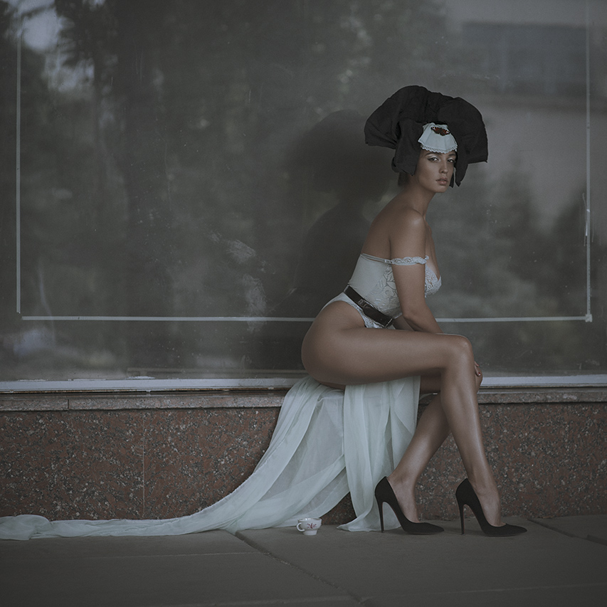 To keep the balance, we will mention the third photograph – ‘Royal Tea’. A portrait of a woman in a black tight-fitting dress with retro hairdo in the style of the 40s. Her intense gaze invites the viewer to puzzle out the story… and follow her.