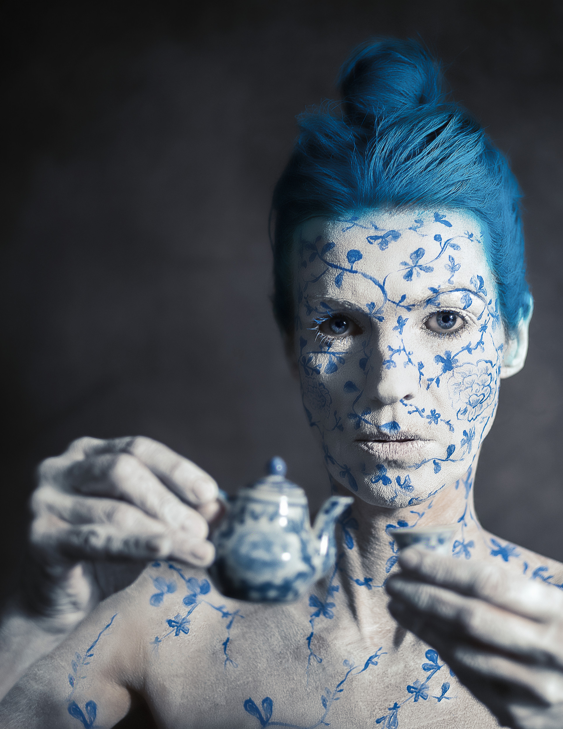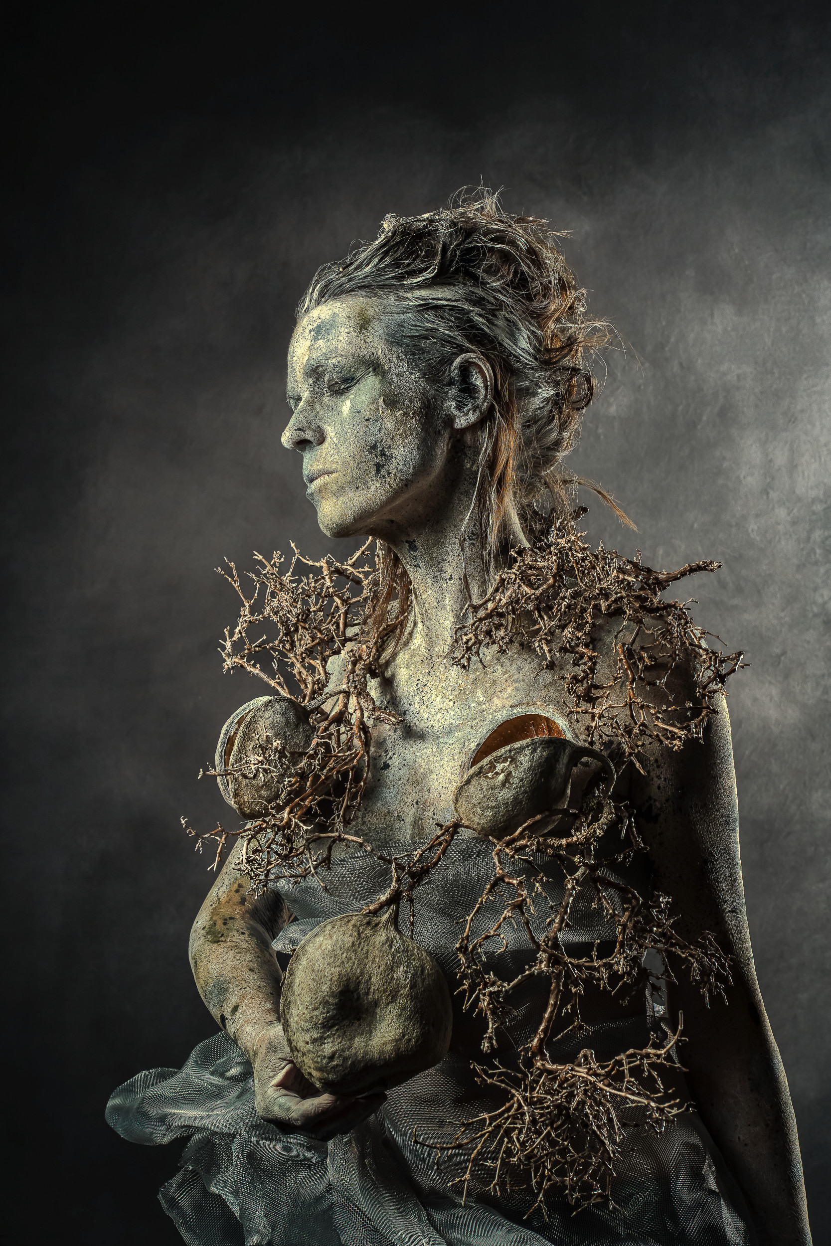 I am responsible for everything that happens in front of the camera. From the image idea to the complete implementation to the poses, I do everything on my own. In addition to the classic bodypainting I like to use materials from nature such as earth, mud, leaves, twigs, etc. and integrate them into my work. I use my body as my canvas and sculpture to turn my ideas into reality. And that is exactly the moment when my husband and photography come into play. But now it’s not just about simply capturing my form of art; the special challenge for him is to portrait my ideas in “the right light”. In the joint post-production we give our images the finishing touches.