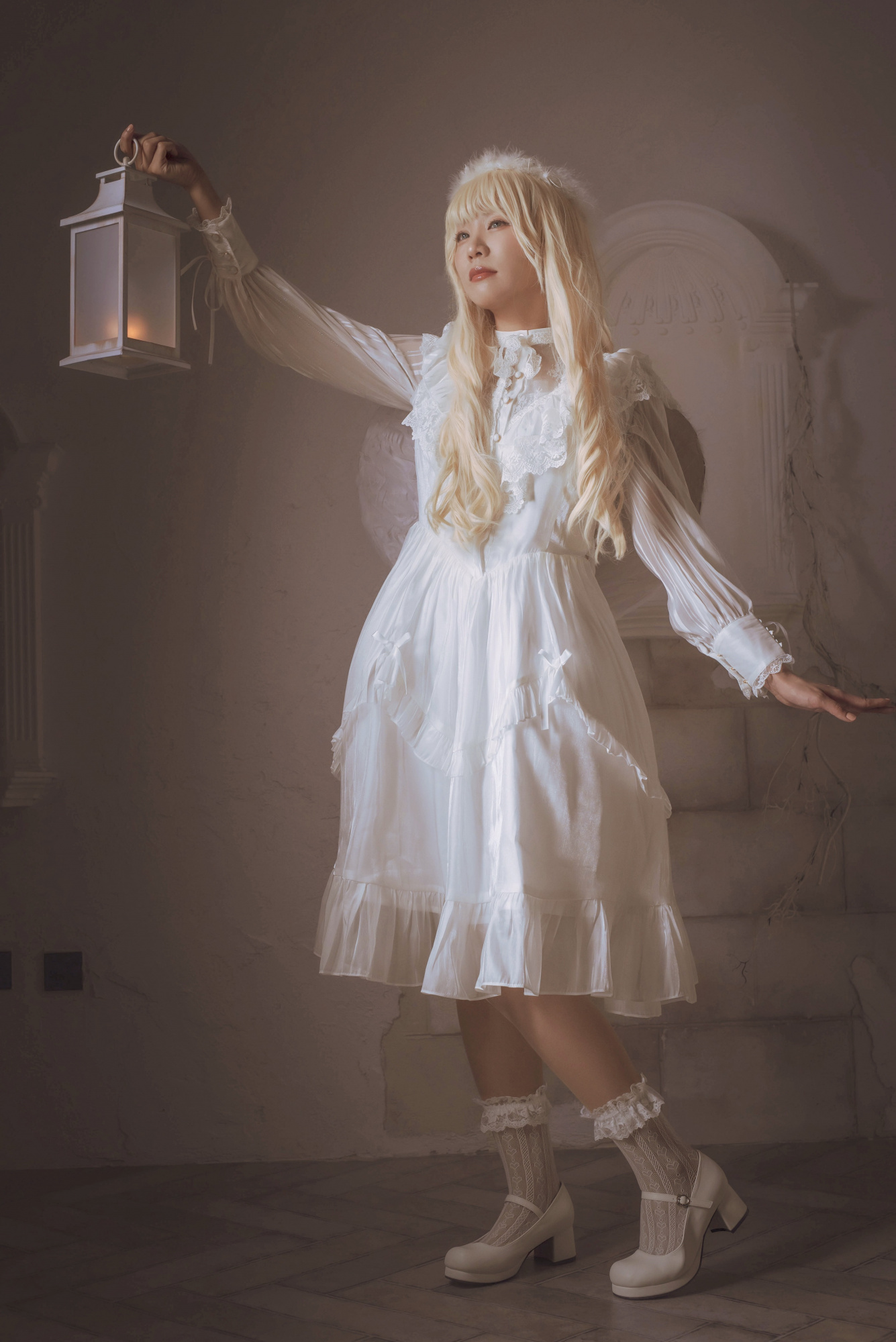 Moving slowly, softly and smoothly between shots, almost dancing, using the hands to emulate those of ballet dancers.