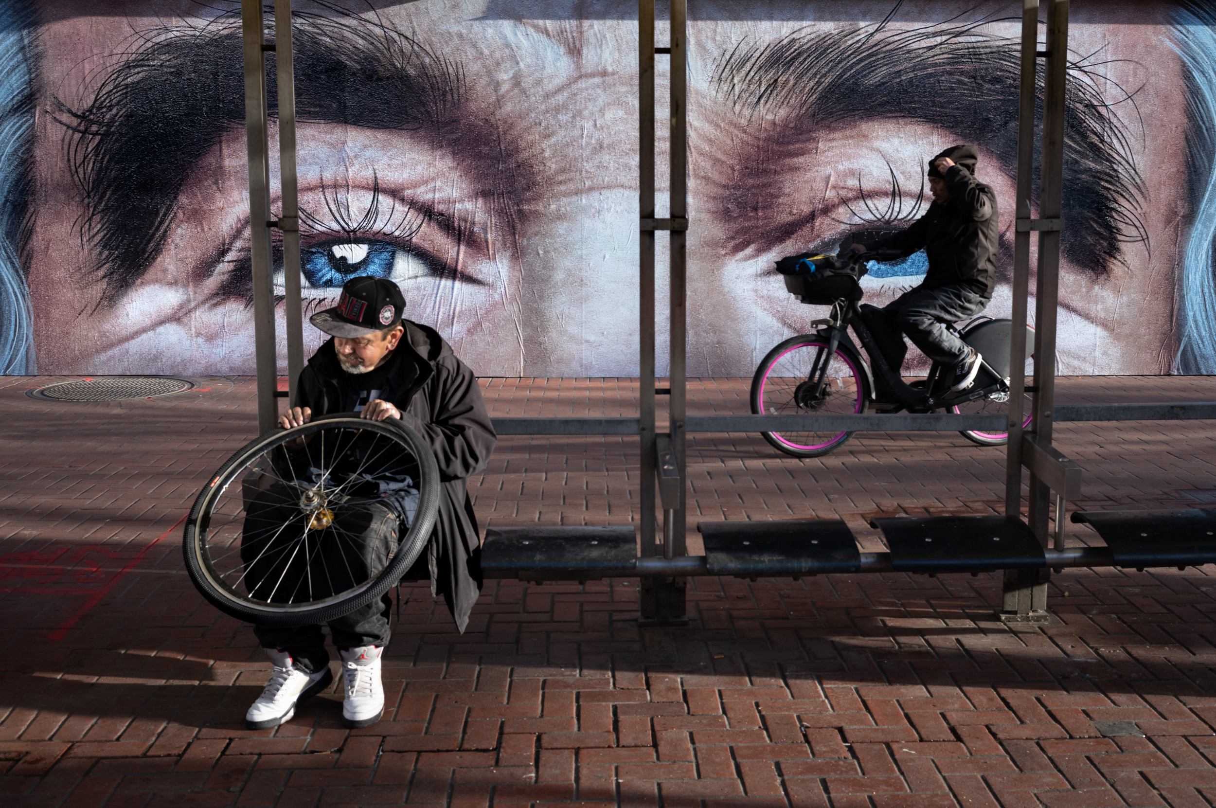 I had been shooting with Sony ASPC and full frame cameras, and prime lenses. My most recent set up was the Sony A7Riv with a G Master prime 35mm lens. As of January 2023, I started using the Leica M11 with a 35mm prime lens. The Leica M11 has an analogue (film) camera experience, keeps my attention on the composition rather than the camera operation, enables more focus control with zone focusing, and that is much lighter and smaller so as to draw less attention when on the streets. My camera bag is the Peak Design Everyday Sling.