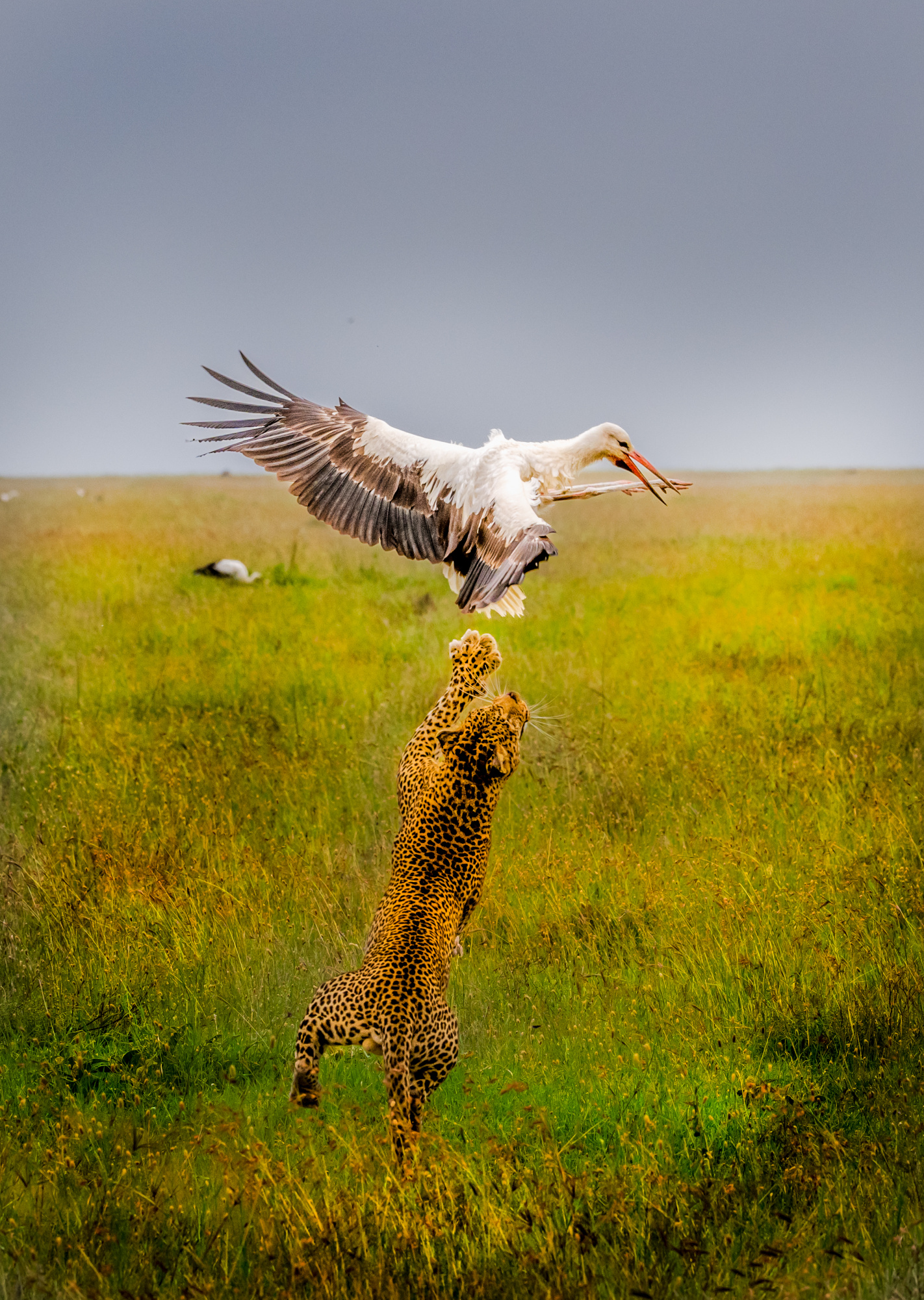 ‘Leopard catching a big bird in air'