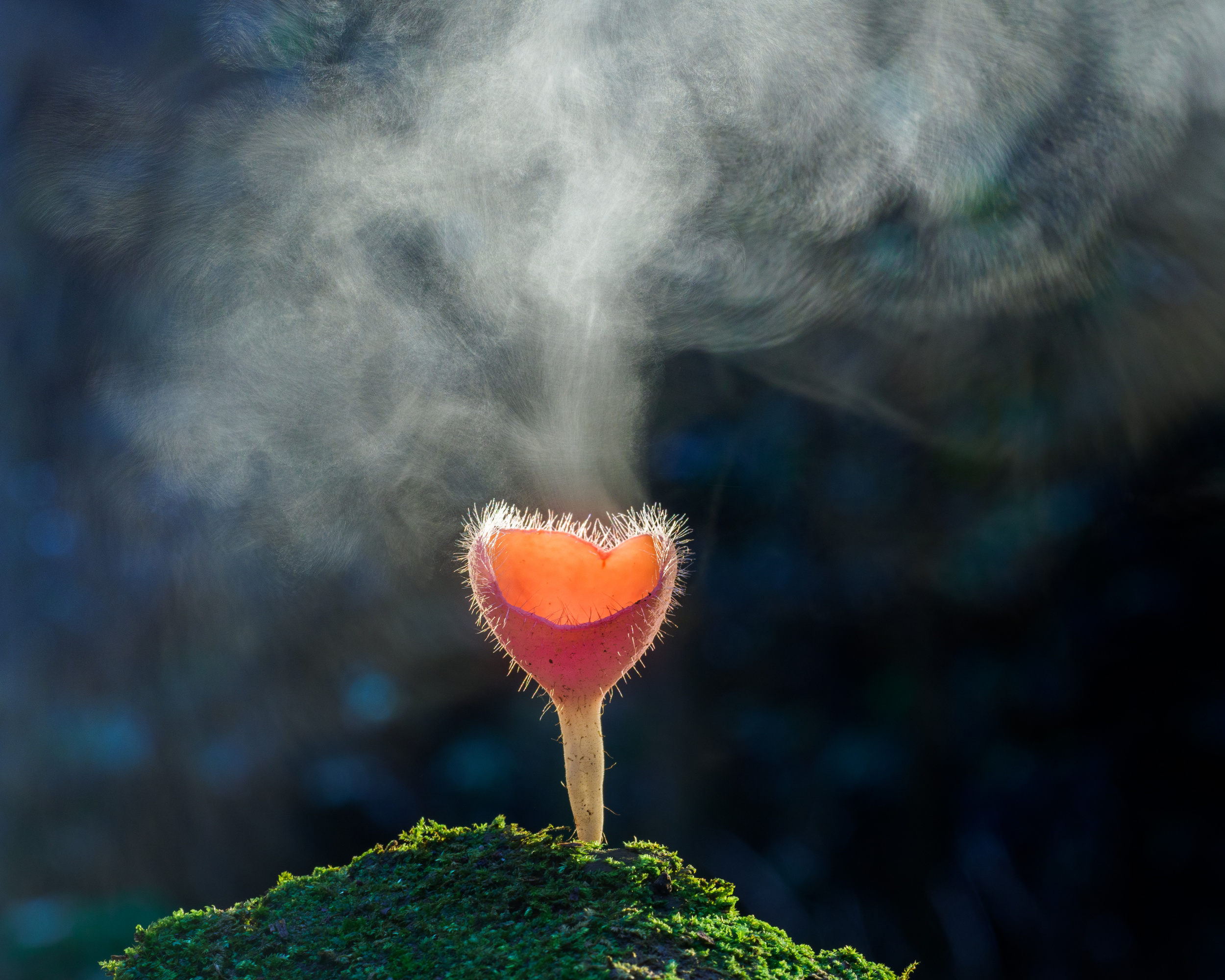 'The bursting spores of Cookeina Tricholoma mushroom' by Sharita Miranda