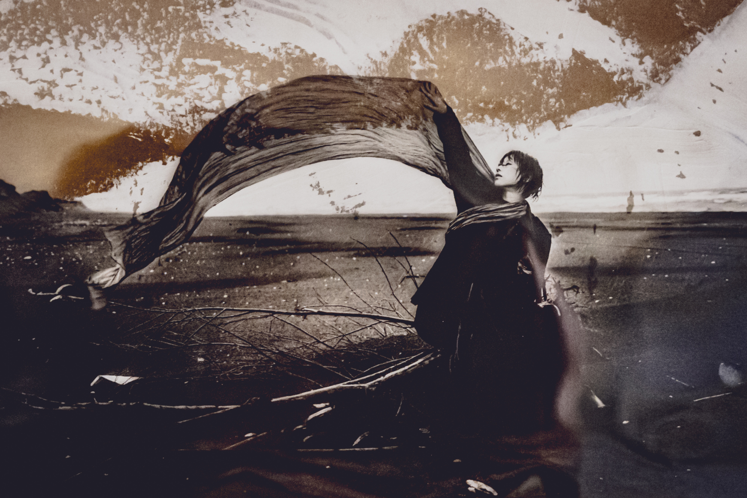 One of the portrait series I created is called 'The Snowfield Inside Me'. It is not a digital composition, but an analogue one created by overlaying a photograph on craft paper that has been painted with white oil paint. I live in Sapporo, a city that gets a lot of snow, and I grew up surrounded by snowfields and snowstorms. The snowfield inside me represents that person's heart. I take photographs with the intention of expressing the feelings of the subjects, whether that be an innocent, pure heart like a snowfield or a raging snowstorm.