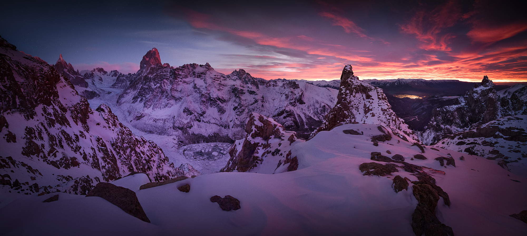 Many times, I must camp near the ridges and patiently wait – sometimes for days – for the right window of light. I must be also ready to accept that it might not come at all. Such great uncertainty is what makes the reward so deep. When the light does appear – sweeping across jagged peaks, igniting the sky in fire, or softly revealing a hidden lake – it feels like a gift.  The images I bring back are not just pictures of Patagonia, but visual records of personal journeys into the wildest corners.